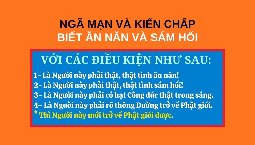 Người tu theo Thiền Tông mà ngã mạn và kiến chấp, nếu mà biết ăn năn và sám hối, thì khi người đó chết có thể được trở về Phật giới, nhưng với các điều kiện như sau: