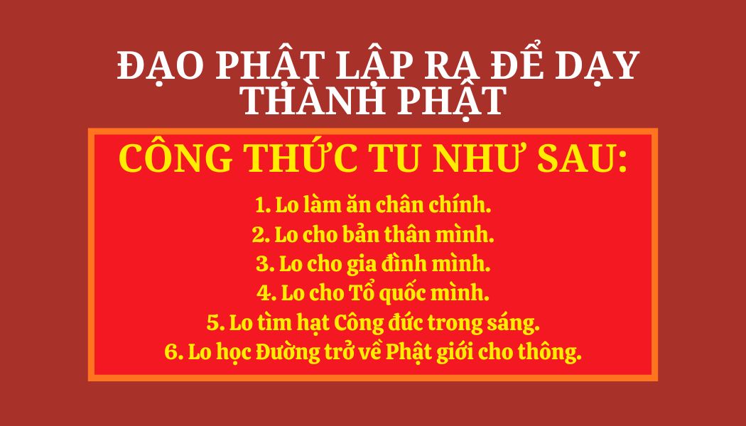 – Ý 1: Đạo Phật lập ra để dạy thành Phật, vậy công thức tu ra sao?